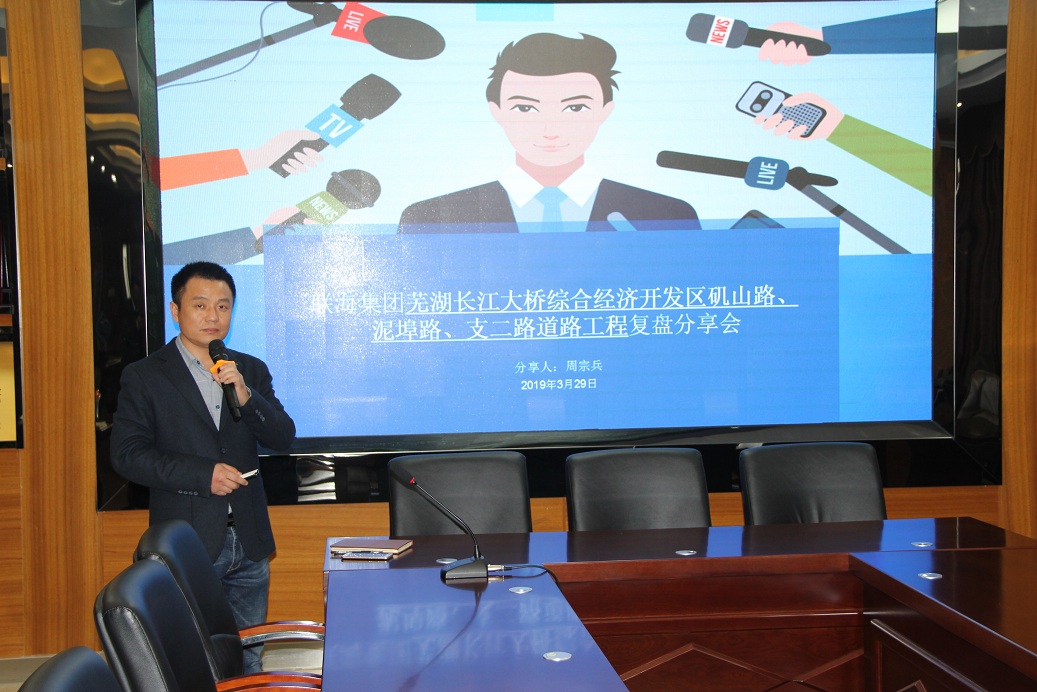 2019年3月29日下午,由發(fā)展中心組織的2019年第二場(chǎng)項(xiàng)目復(fù)盤分享交流會(huì)在聯(lián)海集團(tuán)五樓會(huì)議室舉行,本次復(fù)盤分享是由周宗兵同志帶來(lái)的《蕪湖長(zhǎng)江大橋綜合經(jīng)濟(jì)開(kāi)發(fā)區(qū)磯山路、泥埠路、支二路道路工程復(fù)盤分享》,集團(tuán)公司各板塊領(lǐng)導(dǎo)及同仁參加了此次會(huì)議。