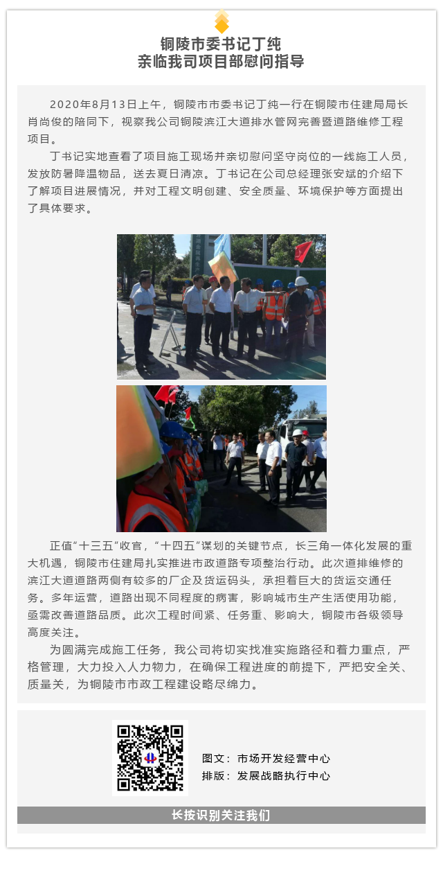 銅陵市委書記丁純親臨我司項目部慰問指導